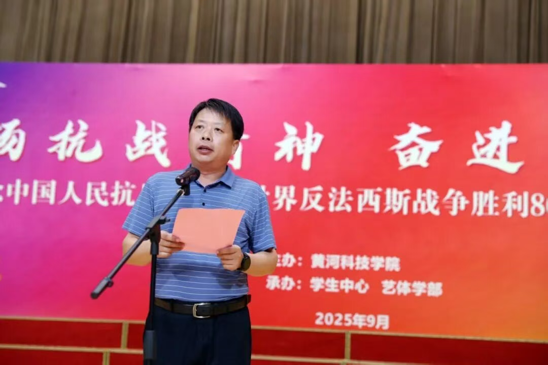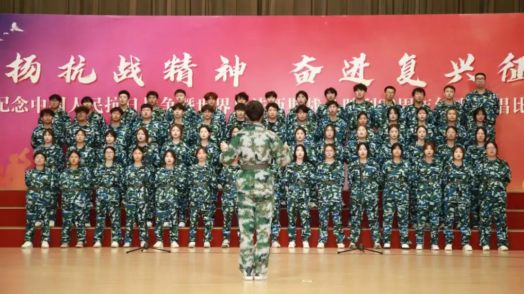 9月16日,我校在新体育馆举办以“弘扬抗战精神 奋进复兴征程”为主题的纪念中国人民抗日战争暨世界反法西斯战争胜利80周年红歌合唱比赛。学生中心主任张丕万,各部门负责人、新生辅导员及2025级全体新生参加了此次活动。