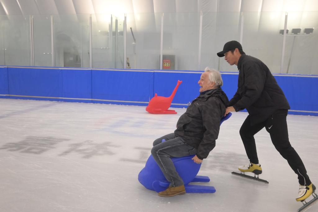 活动伊始,国际交流中心老师郭芮首先就学校冰上运动特色及活动安全注意事项向全体参与者作了说明。随后,在专业的冰上项目场馆内,学校短道速滑世界冠军陈德全老师为本次活动提供了全程专业指导。他耐心细致地讲解了滑冰安全知识,并亲自示范、逐一协助外籍教师正确穿戴冰鞋和防护护具,为整个体验活动奠定了坚实的安全基础。掌握了基本的安全准备后,在陈德全老师的专业指导下,外籍教师们开始了滑冰技巧的学习。初次体验冰上运动的外籍教师充满好奇与期待,逐渐克服了最初的紧张,勇敢地迈出步伐,体验着冰上滑行的独特乐趣。