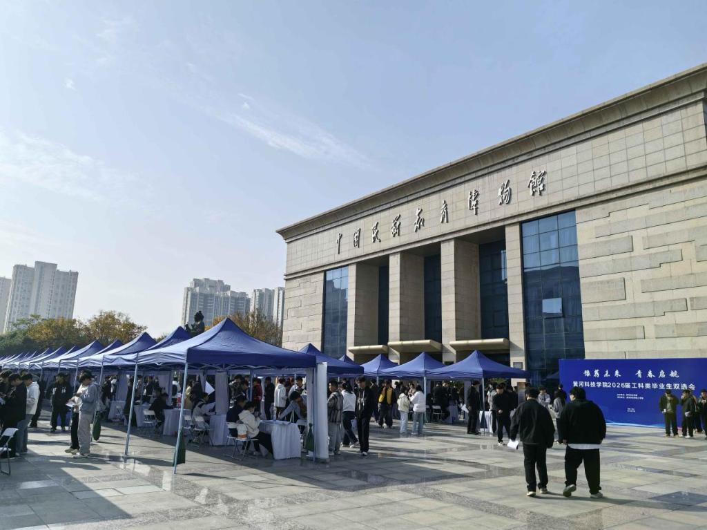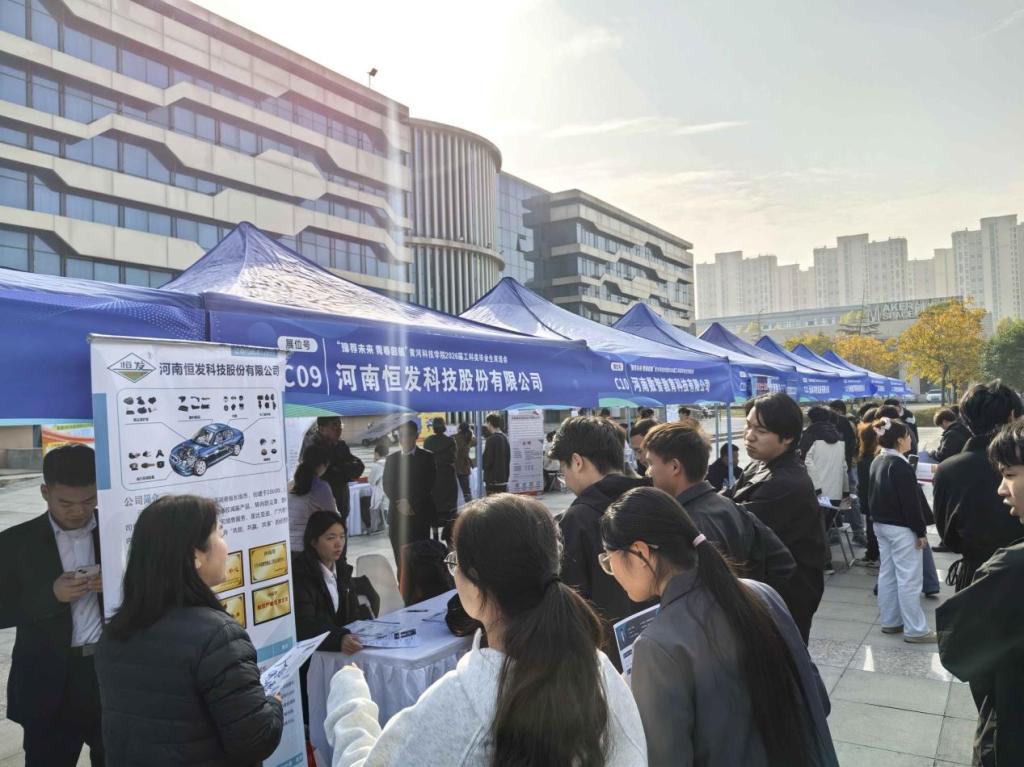 为精准对接用人单位与工科人才,推动毕业生高质量就业,11月11日,黄河科技学院“豫荐未来 青春启航”2026届工科类毕业生双选会在南校区学术报告厅西侧广场成功举办。本次活动汇聚了60余家优质企业,为毕业生提供了涵盖数千个岗位的就业盛宴,现场气氛热烈,成果显著。