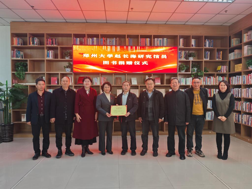 11月27日,郑州大学赵长海研究馆员向我校图书馆无偿捐赠珍贵典籍仪式在图书馆举行。河南省高校图书情报委员会副主任兼秘书长崔波教授、西亚斯学院图书馆馆长谢琳惠等嘉宾出席,中原学研究院、图书馆各部门负责人及师生代表共同见证了这一文化盛事。仪式由图书馆副馆长唐玲主持。