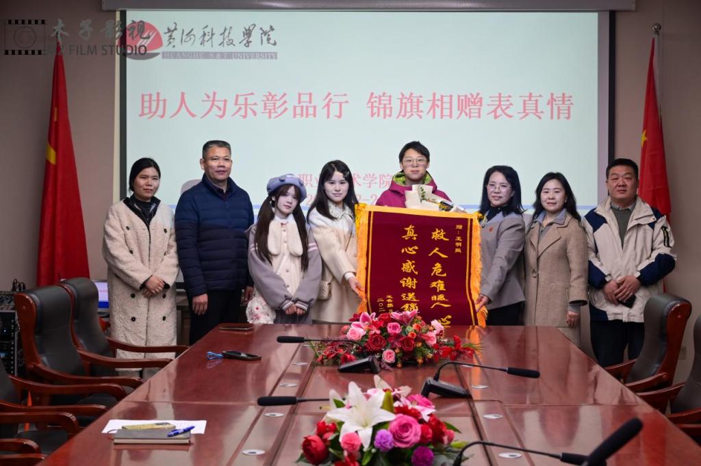 职业技术学院院长李萍、分党委副书记张松炎、艺术工程系支部书记白跃伟、学前教育系支部书记张丽红、班主任李焕英老师、部分班级班长等共同见证了这一温暖时刻。李萍郑重接过锦旗并表示:“王明熙同学的善举,是学院落实立德树人根本任务、践行‘德技并修、知行合一’育人理念的生动体现。他的行为展现了新时代青年应有的精神风貌,是所有学生学习的榜样。我们将以此为契机,持续深化思政教育,培养更多有理想、敢担当、能吃苦、肯奋斗的新时代好青年。”