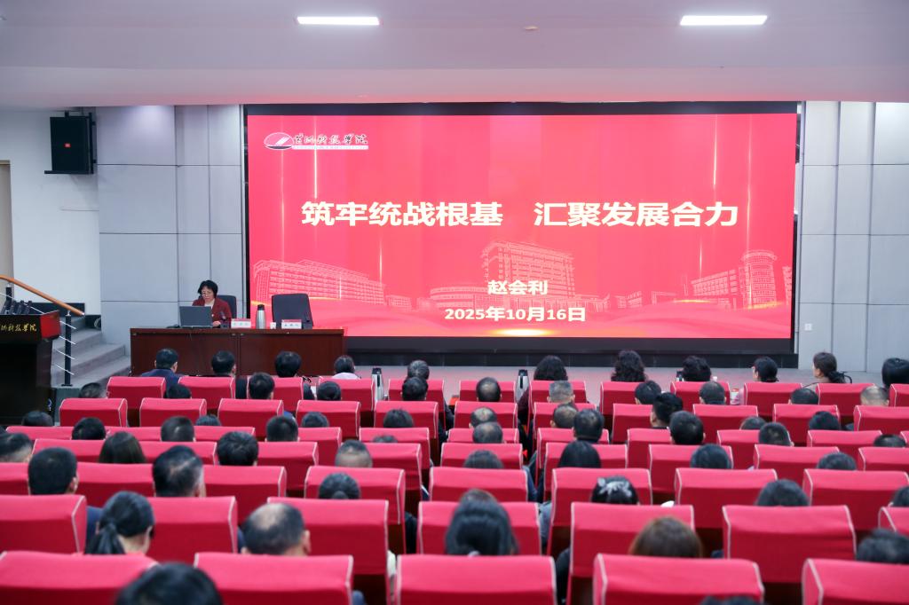 本次党课既是贯彻落实省委统战部、省委教育工委关于“党委学《条例》 书记讲统战”系列活动的重要举措,也是落实校领导讲党课制度的重要安排,旨在通过专题学习,进一步增强全校党员干部对统战工作重要性的认识,提升统战工作能力,凝聚发展共识,为推动学校事业高质量发展汇聚广泛力量。
