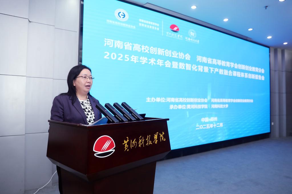 为深入学习贯彻习近平总书记给中国国际大学生创新大赛参赛学生代表的回信精神,全面落实党的二十届四中全会关于“促进科技自主创新和人才自主培养良性互动”的要求,衔接“十五五”时期教育科技人才一体发展战略部署,12月27日,河南省高校创新创业协会、河南省高等教育学会创新创业教育分会2025年学术年会暨数智化背景下产教融合课程体系创新报告会在黄河科技学院成功举办。