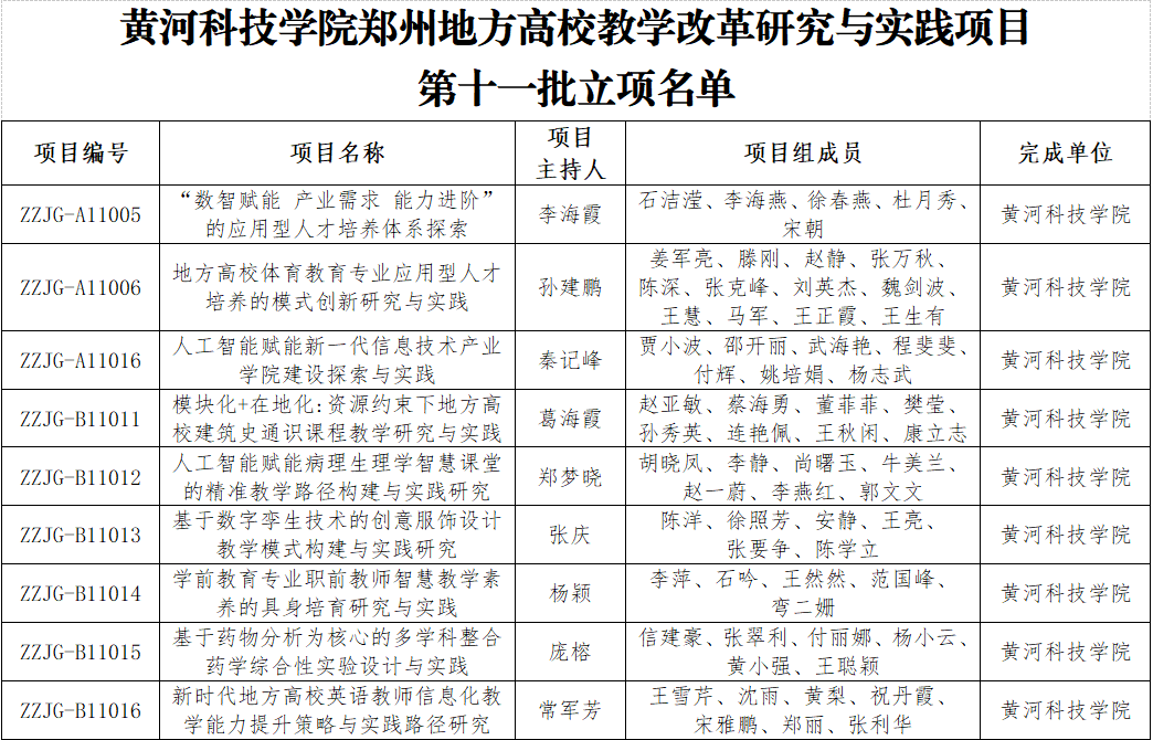 近日,郑州市教育局发布《关于公布郑州地方高校教学改革研究与实践项目第十批结项验收结果和第十一批立项结果的通知》,我校成功获批9项,立项数量在同类院校中位居前列。