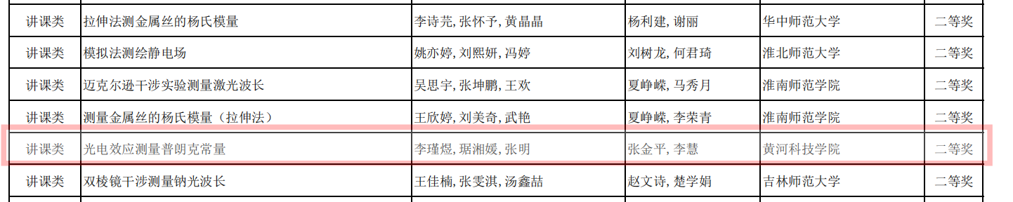 近日,第十一届全国大学生物理实验竞赛(创新)决赛在中南大学圆满落幕。我校工学部由杨雅罄等三位同学完成的《密立根油滴实验》获得一等奖,由李瑾煜等三位同学完成的《光电效应测量普朗克常量》获得二等奖,展现了我校学子突出的科学素养与创新实力。