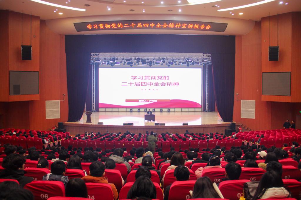 为深入学习贯彻党的二十届四中全会精神,12月9日,应用技术学院举办党的二十届四中全会精神专题宣讲会。济源示范区党工委宣讲团成员,示范区党工委组织部副部长(主持日常工作)卢向阳作宣讲报告。应用技术学院党委书记张丕万主持宣讲会,学院班子成员、中层干部、教师党员、学生党员及入党积极分子800余人聆听了宣讲。