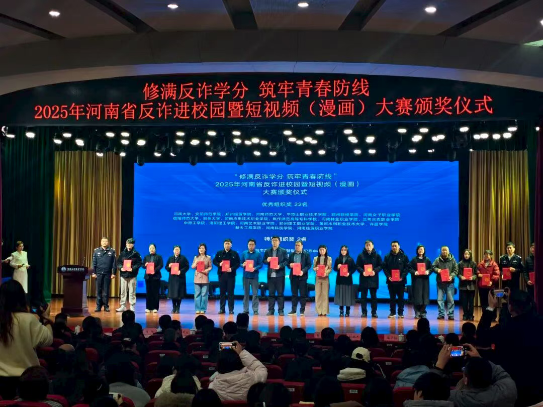 为全面提升师生防范电信网络诈骗的意识和能力,深入推进反诈宣传教育进校园,1月16日,由河南省公安厅、河南省教育厅、共青团河南省委、河南广播电视台共同指导,河南省反电信网络新型违法犯罪中心与中国移动通信集团河南有限公司联合主办,河南广播电视台法治频道承办的“修满反诈学分筑牢青春防线”2025年河南省反诈进校园暨短视频(漫画)大赛颁奖仪式成功举行。