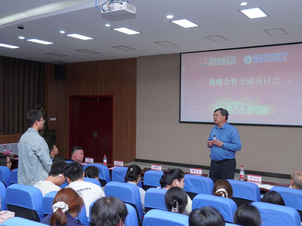 近日,我校与河南省社会科学院国际学术交流中心战略合作协议签署仪式暨“发展集体经济、实现乡村振兴”学术报告会在工学部智能楼鲁班讲堂举行。双方正式建立战略合作关系,共同搭建“政-校-研”协同创新平台,助力河南县域经济高质量发展与乡村振兴。
