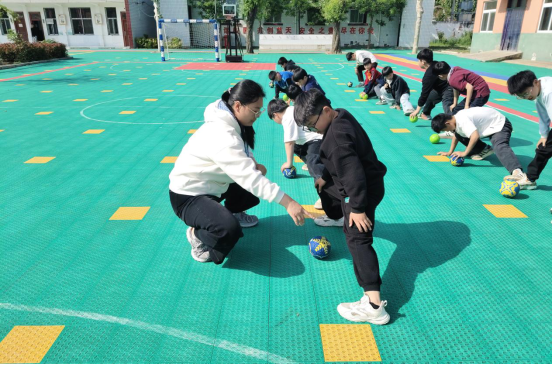 手球课上,王瑞老师先带领孩子们充分热身,细致讲解、规范示范手球投球基础动作。孩子们认真模仿、有序练习,清脆的欢呼声响彻校园。掌握基本技能后,老师将同学们分组开展小型对抗赛。传球、跑位、射门…… 初次接触手球的孩子们全情投入,在竞技中感受体育魅力,在配合中领悟团队精神,一张张笑脸洋溢着自信与快乐。