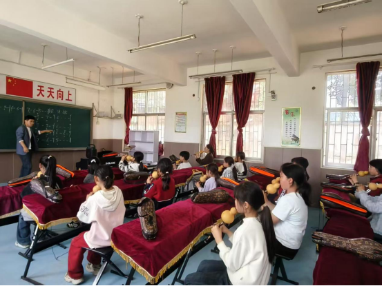 教室里,葫芦丝的悠扬旋律缓缓流淌。杜晓钟老师与学生王帅心从乐器构造、持握姿势、正确口型讲起,一步步带领孩子们走进民族器乐的世界。面对新奇的葫芦丝,孩子们眼中满是好奇与期待。从平稳呼吸的气息练习,到“5、6、7” 基础音阶指法教学,再到简单曲目《摇呀摇》分段跟练,老师们耐心引导、循序渐进。经过反复练习,孩子们成功吹出完整旋律,集体合奏虽略显稚嫩,却赢得全场阵阵掌声。课后,老师们还鼓励孩子们坚持练习,让音乐陪伴成长。