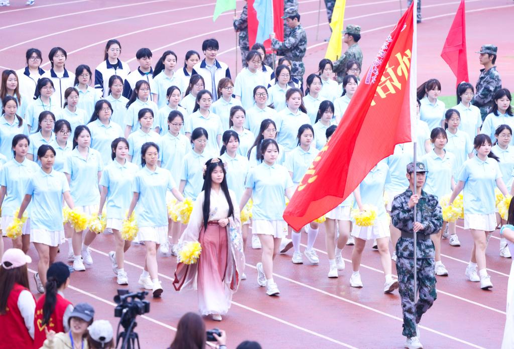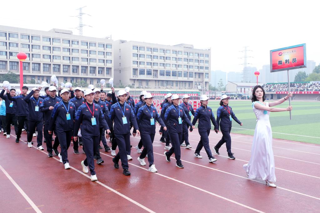 国旗队身姿挺拔、步履铿锵,护卫着鲜艳国旗庄严入场;彩旗队迎风展帜、色彩斑斓,洋溢着蓬勃朝气;裁判员代表队精神饱满、神情庄重,彰显着公平公正的赛事担当;教工代表队步伐稳健、意气风发,展现出爱岗敬业、昂扬向上的精神风貌;校友会代表队温情聚力、风采依旧,传递着薪火相传的母校情怀;各部(院)运动员代表队方阵各具特色,灵动的机器狗列队随行、智能机器人科技感十足,创意十足、亮点纷呈,迈着矫健的步伐依次步入会场,尽显青春朝气与昂扬斗志。