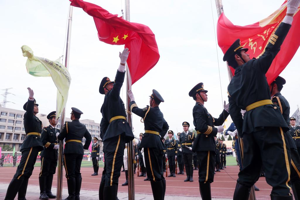 入场式结束后,在庄严嘹亮的国歌声中,鲜艳的五星红旗冉冉升起,飘扬在黄科大上空。