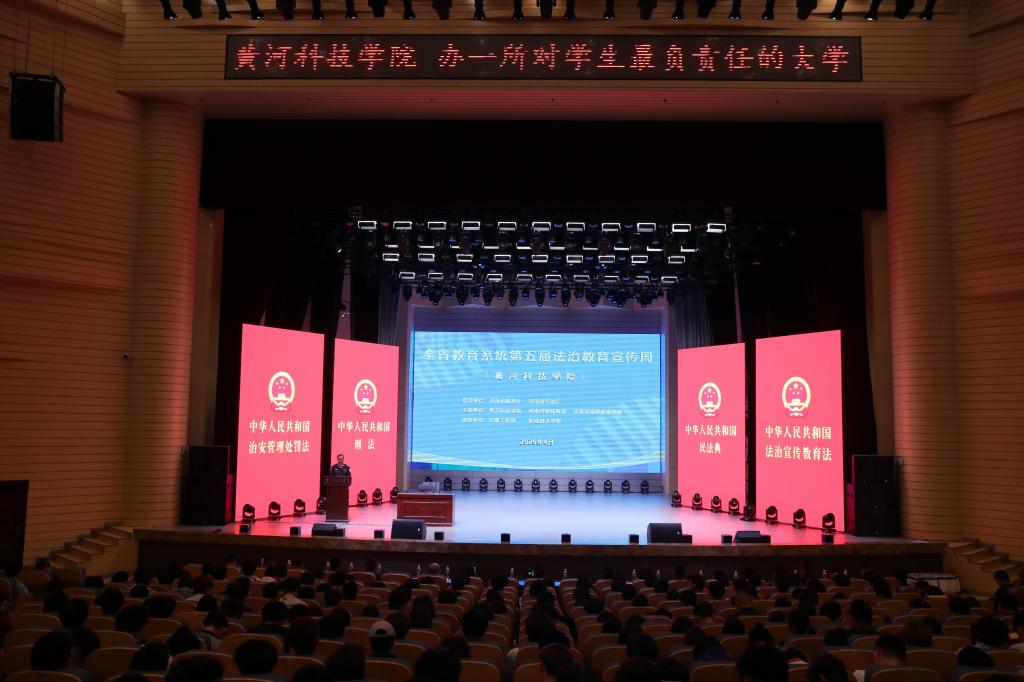 为深入贯彻落实习近平法治思想,落实省教育厅、省司法厅法治教育工作部署,强化青少年法治素养培育,4 月 22 日,黄河科技学院第五届法治教育宣传周 “心存敬畏明法度,笃行致远筑青春” 主题普法讲座在学术报告厅成功举办。
